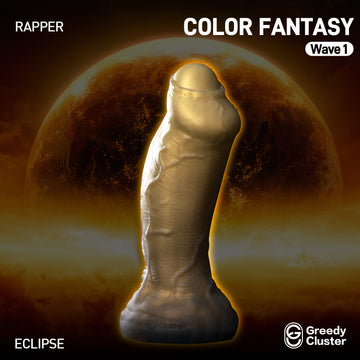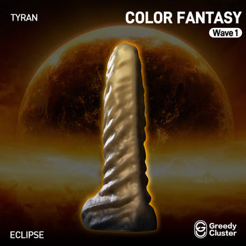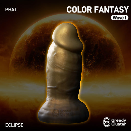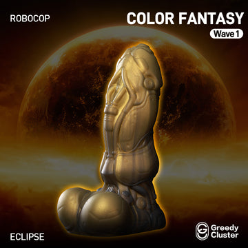 GreedyCluster Color Fantasy special edition poster featuring Eclipse, Lava, and Rust — a limited color series of best-selling dildos with unique hues and textures.