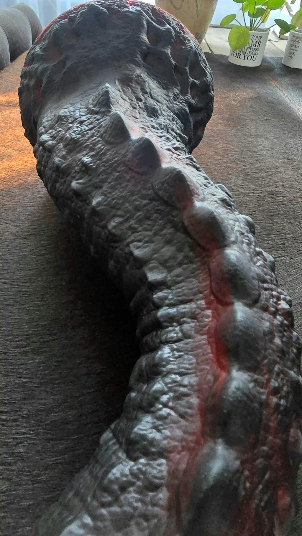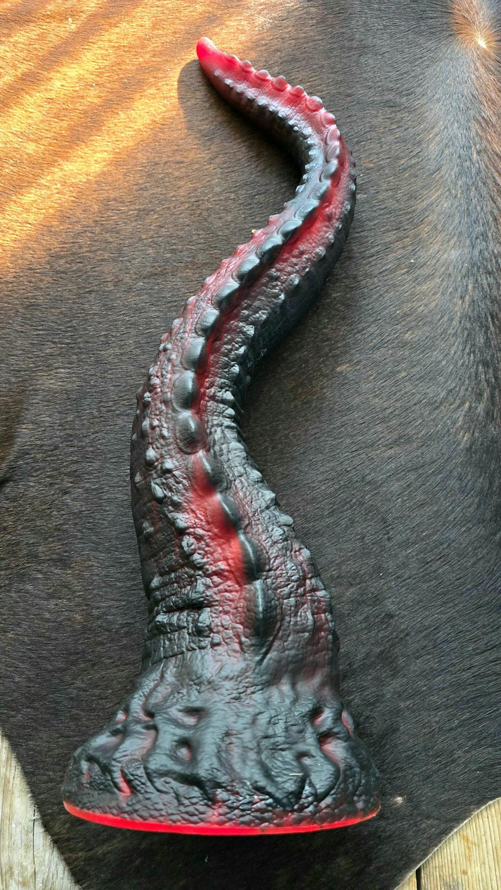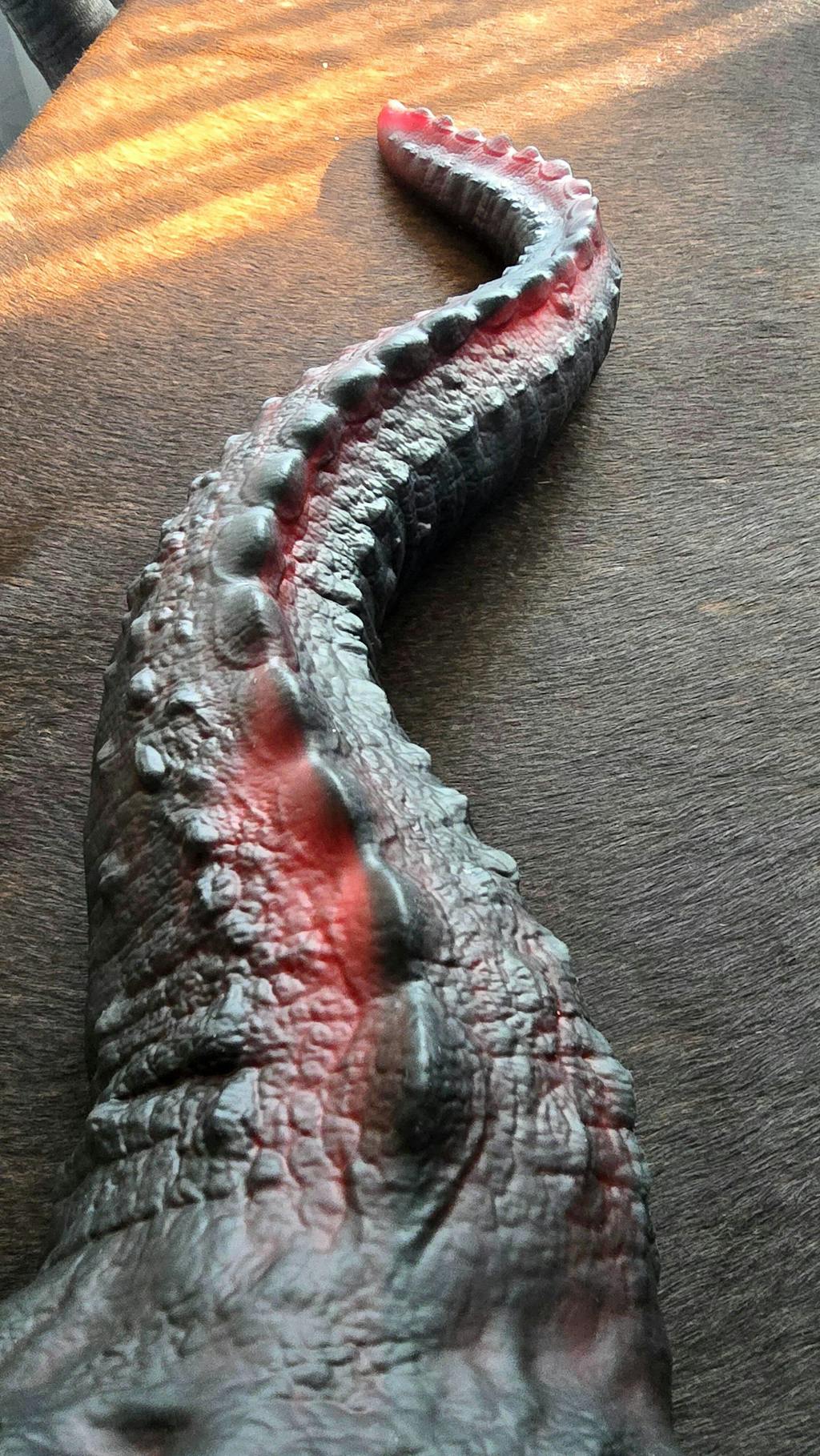 DRACOTAIL is GreedyCluster’s flagship dragon-tail tentacle — built for spectacle and surgical performance. From a unibody suction-cup base it tapers into a long, highly textured tail: one side lined with plate-like spines, the other with swollen, columnar muscular ridges. The skin texture reproduces dragon/dinosaur scales for hyper-real tactile feedback.