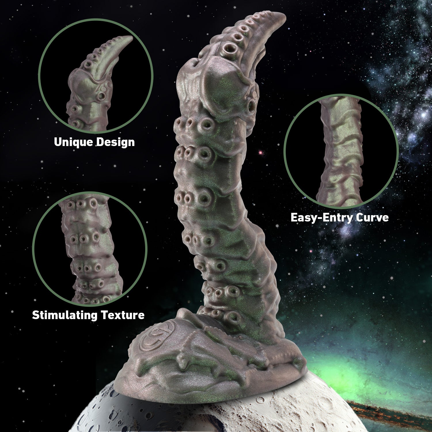 Made for advanced fantasy players and tactile explorers who crave strange textures, S-curve leverage, and deliberate, segmented stretch. Ideal for fans of sci-fi/creature play, tentacle and scorpion aesthetics, and anyone who likes the combination of sharp tip precision + progressive ridges + extra-sensory nubs. Works great for harness or hands-free suction sessions. This is a specialty toy for bold, experienced users.